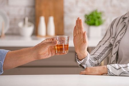Человек отказывается от рюмки алкоголя